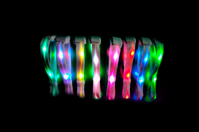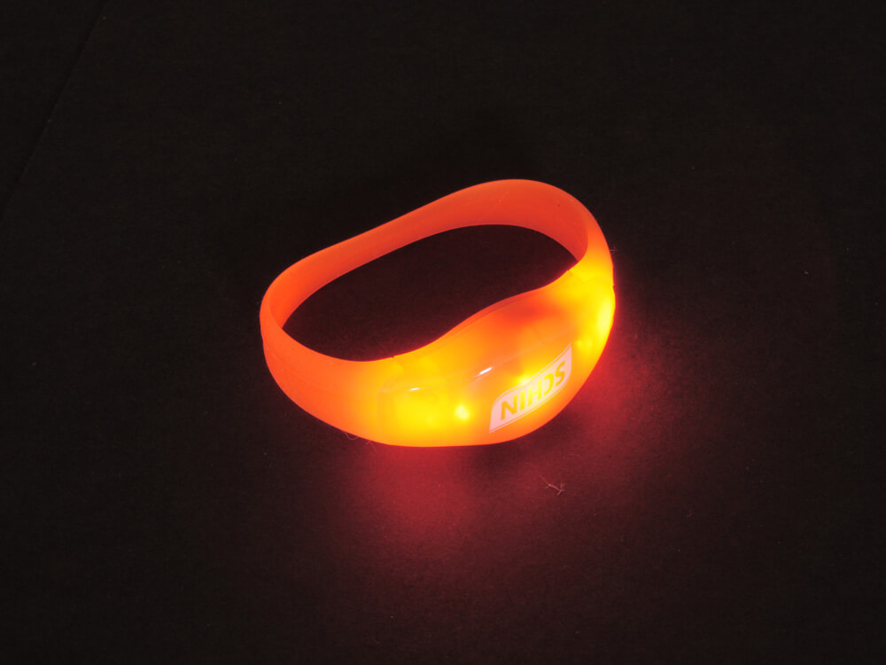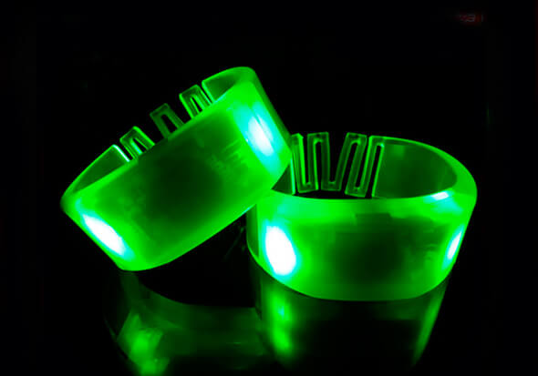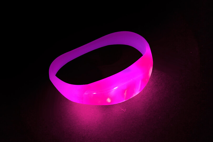 A pulseira pisca de acordo com a batida, porém reage à qualquer estímulo sonoro, músicas com a batida mais espaçada deixam o efeito mais de acordo com o ritmo.